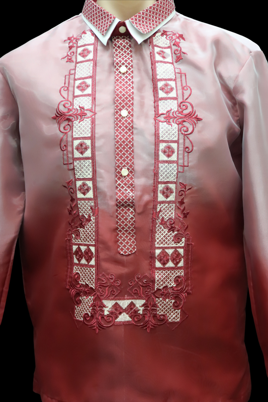 Burgundy Organza Barong - 02