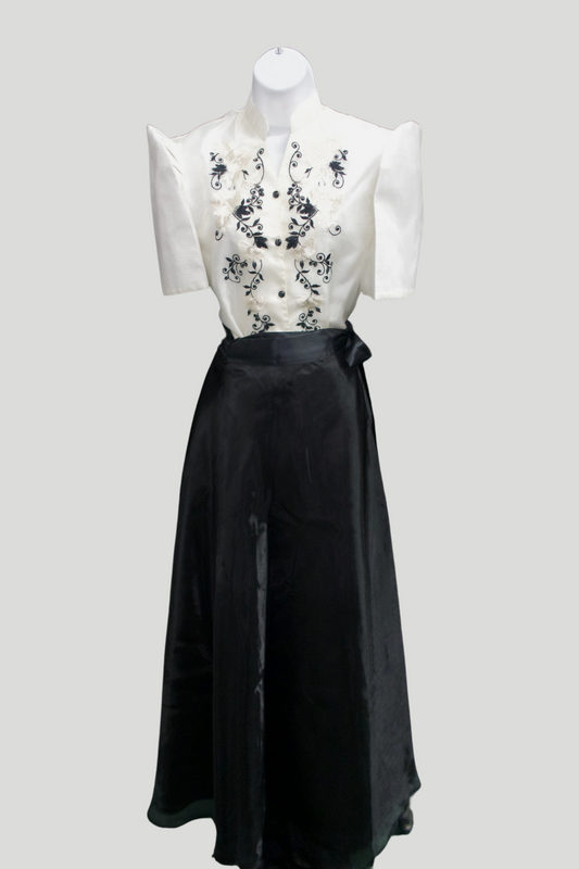 3/4 Sleeve Hand Painted Barong Blouse - Black
