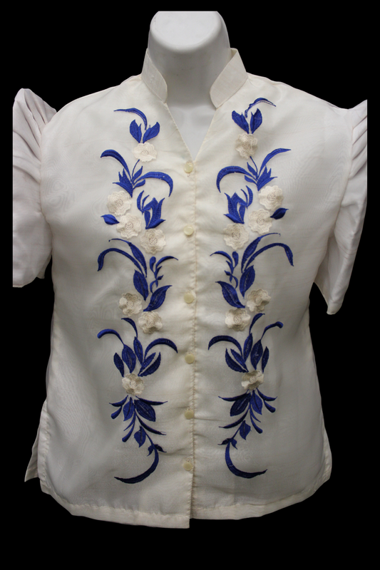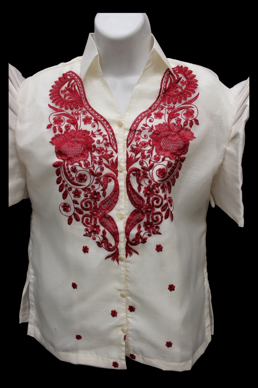 3/4 Sleeve Barong Blouse - Black/Mocha