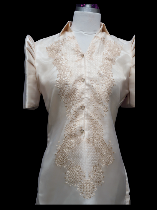 Satin Barong Dress - Beige