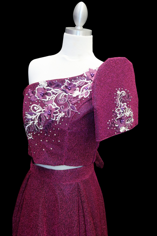 Candy Crush Fuschia - One Shoulder Filipiniana