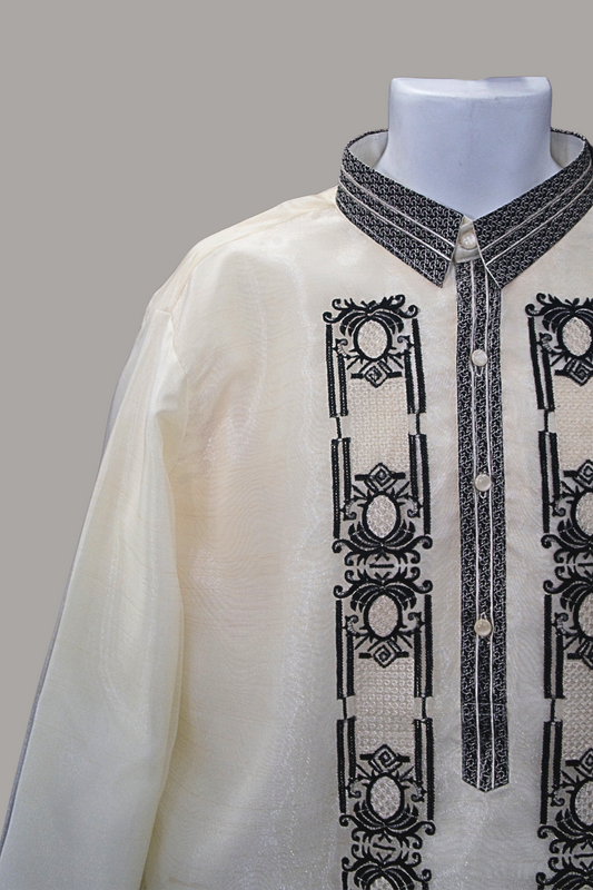 "Sidlak" Beige/Black Organza Barong