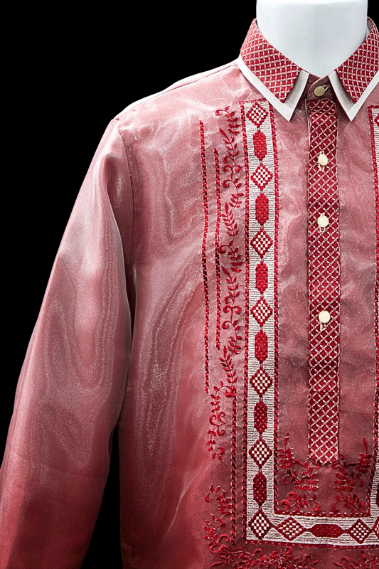 Burgundy Mono Org Barong - Levi