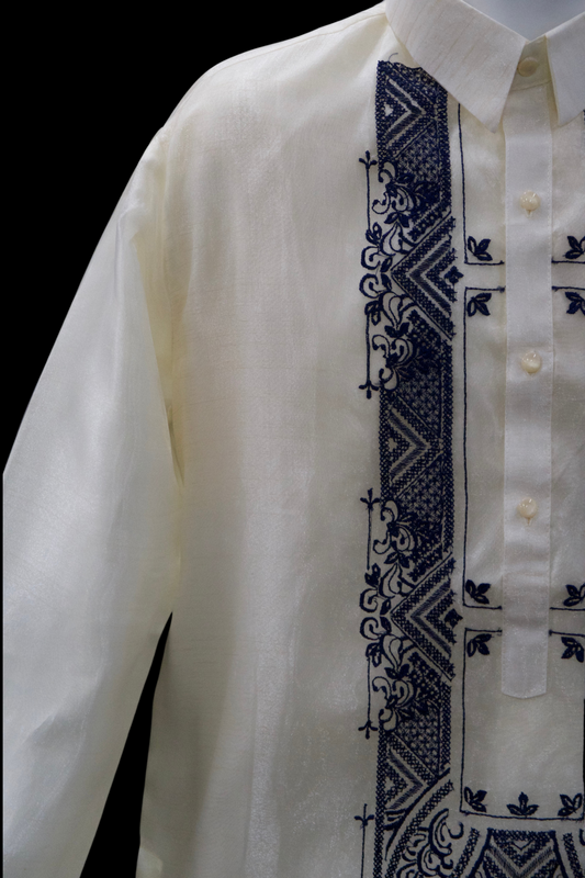 Beige & Navy Organza Barong