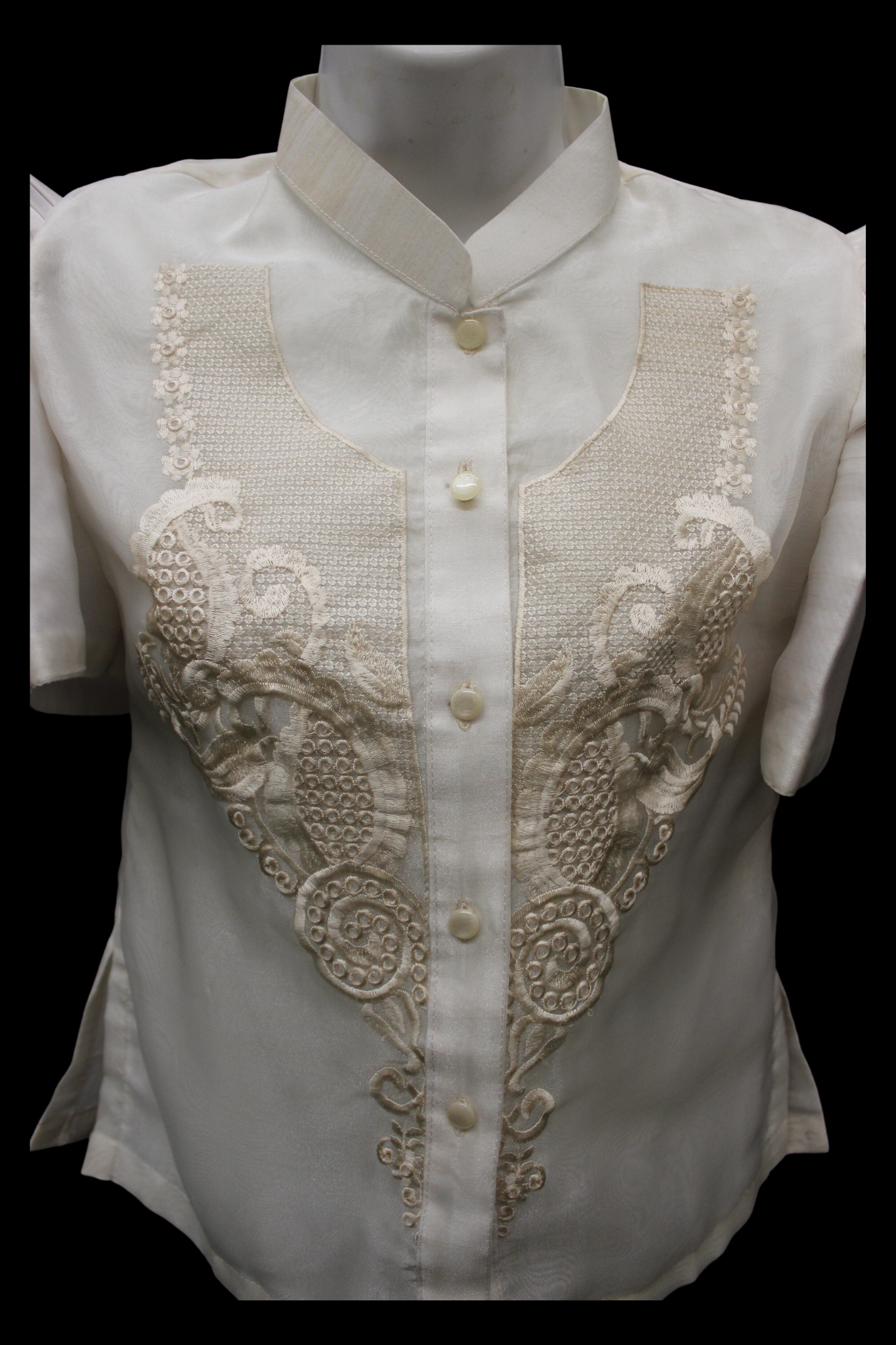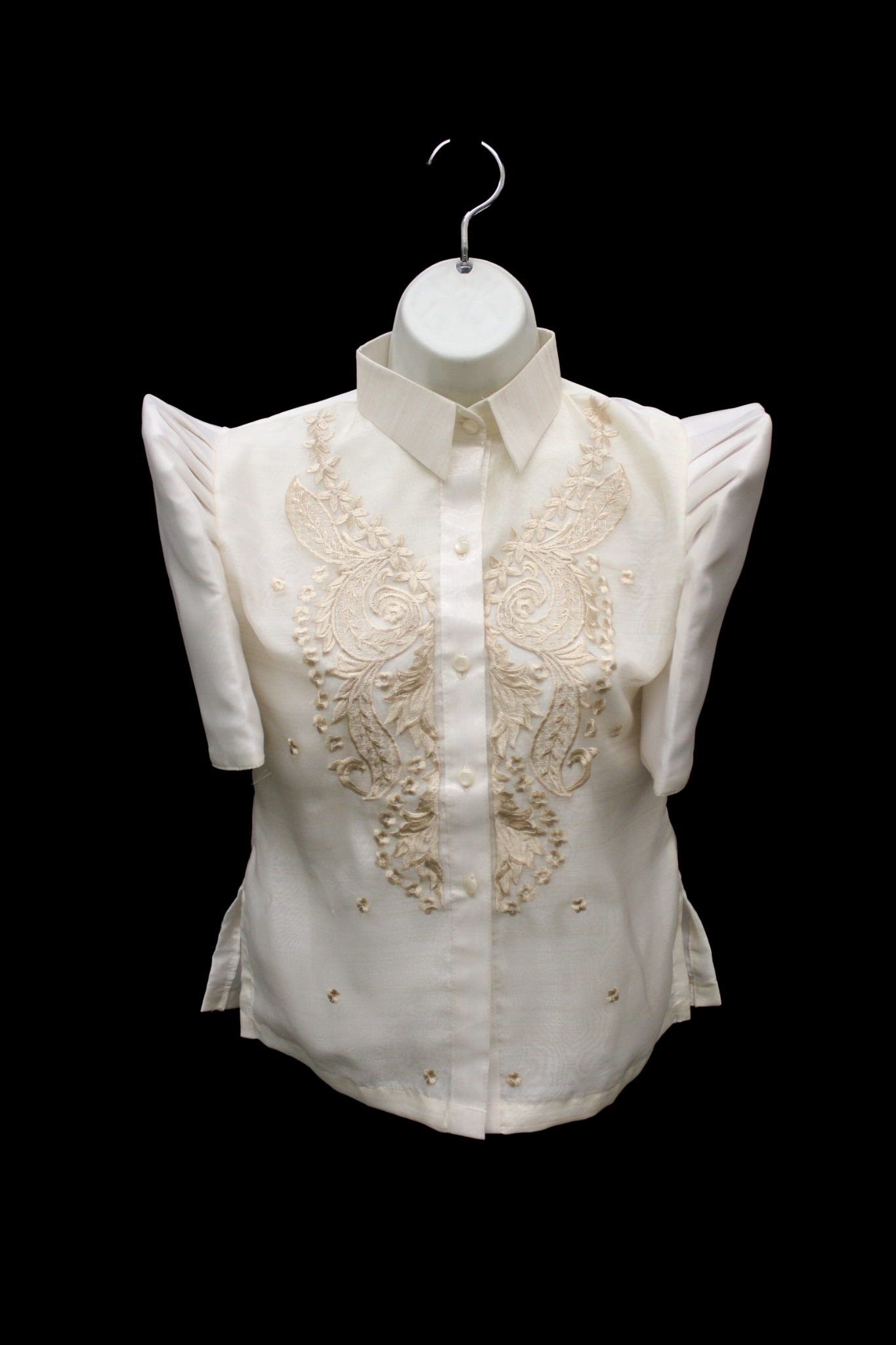 The barong blouse is perfect to pair with our Satin Wrap Skirt or even a pair of wide leg pants for a modern style. The mestiza/butterfly sleeve detail pays tribute to the Maria Clara sleeves to give that Filipiniana style look.