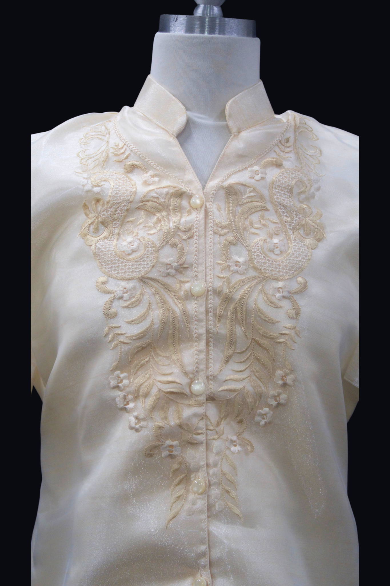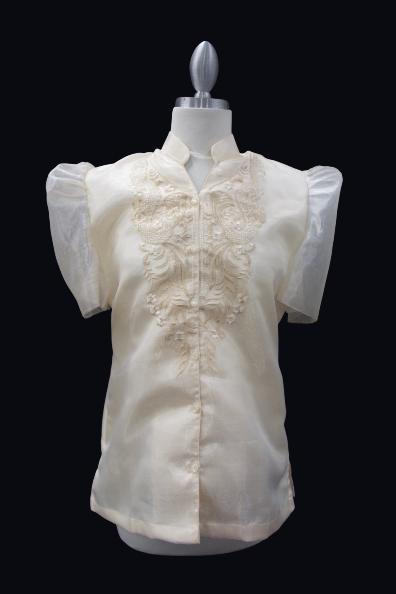 An elevated version of our Mestiza Sleeve Filipiniana Blouse, now with satin material and see through organza sleeves.