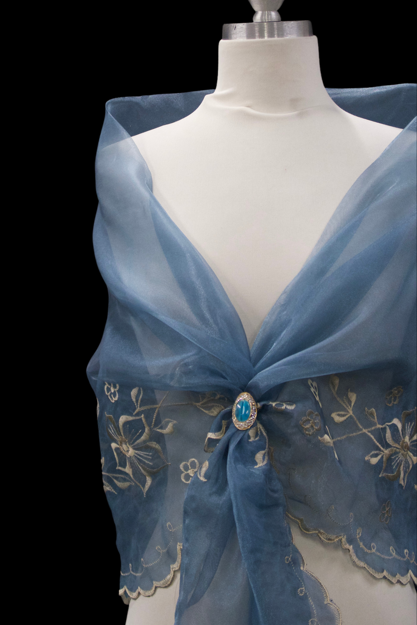 Made out of a breathable yet elegant Organza fabric, the Embroidered Alampay is perfect to wear over any dress, jumpsuit, or outfit to add a touch of Filipiniana. Can be worn off the shoulder for a more modern look. Instead of using a brooch, we style ours using a ring to cinch it together.