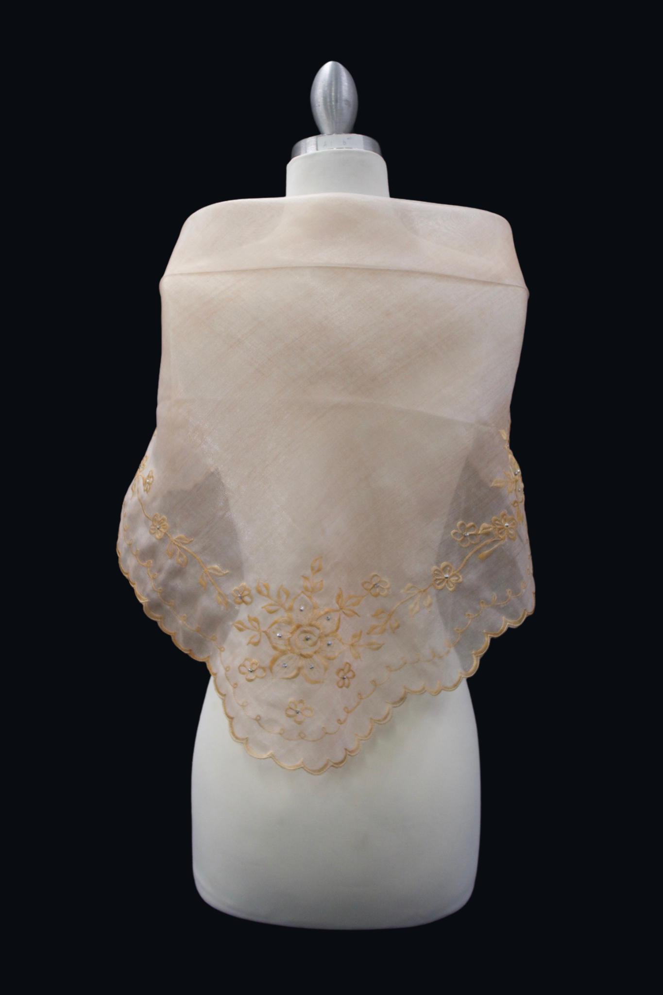 Made out of a breathable yet elegant Organza fabric, the Embroidered Alampay is perfect to wear over any dress, jumpsuit, or outfit to add a touch of Filipiniana. Can be worn off the shoulder for a more modern look. Instead of using a brooch, we style ours using a ring to cinch it together.