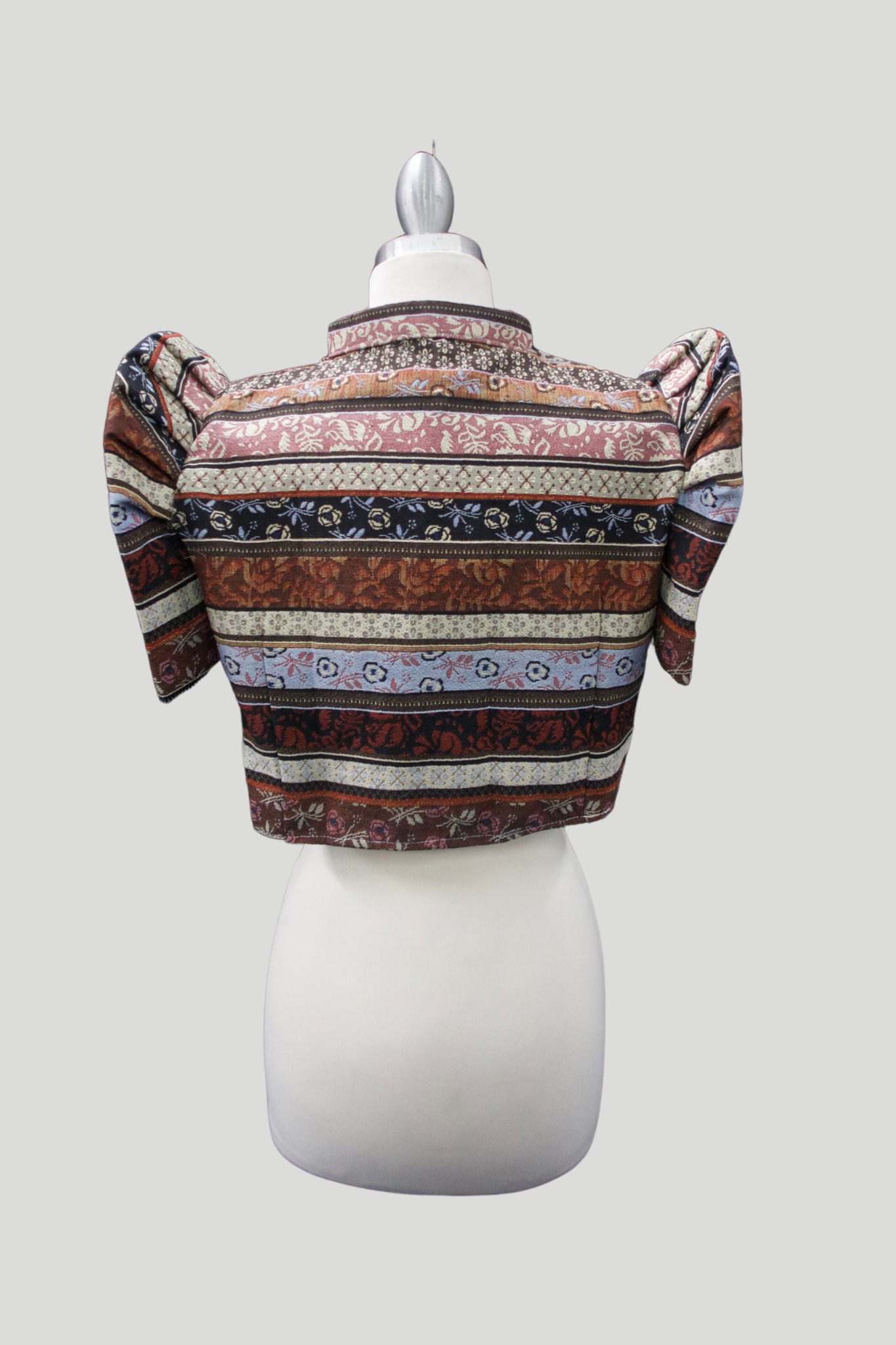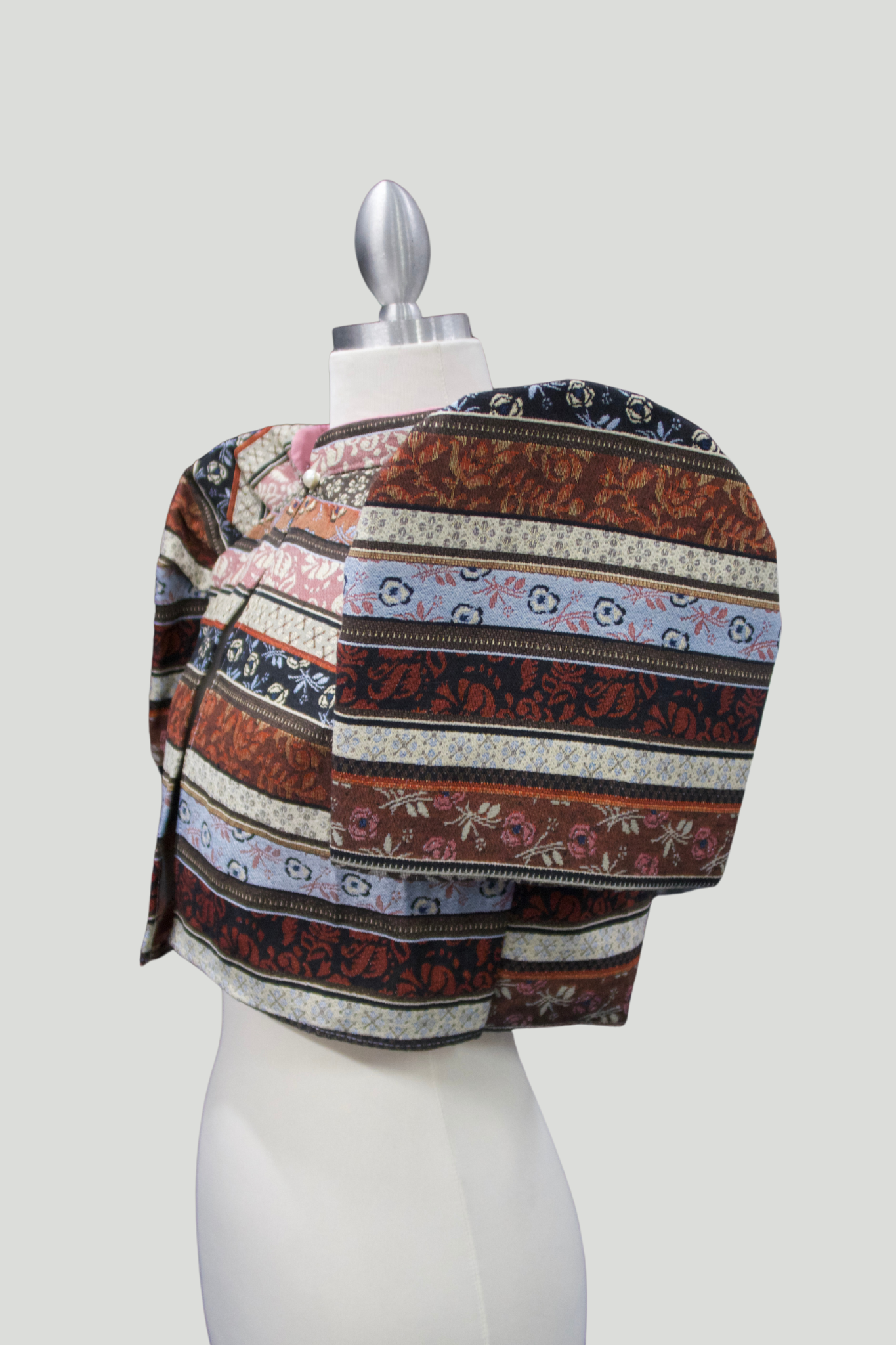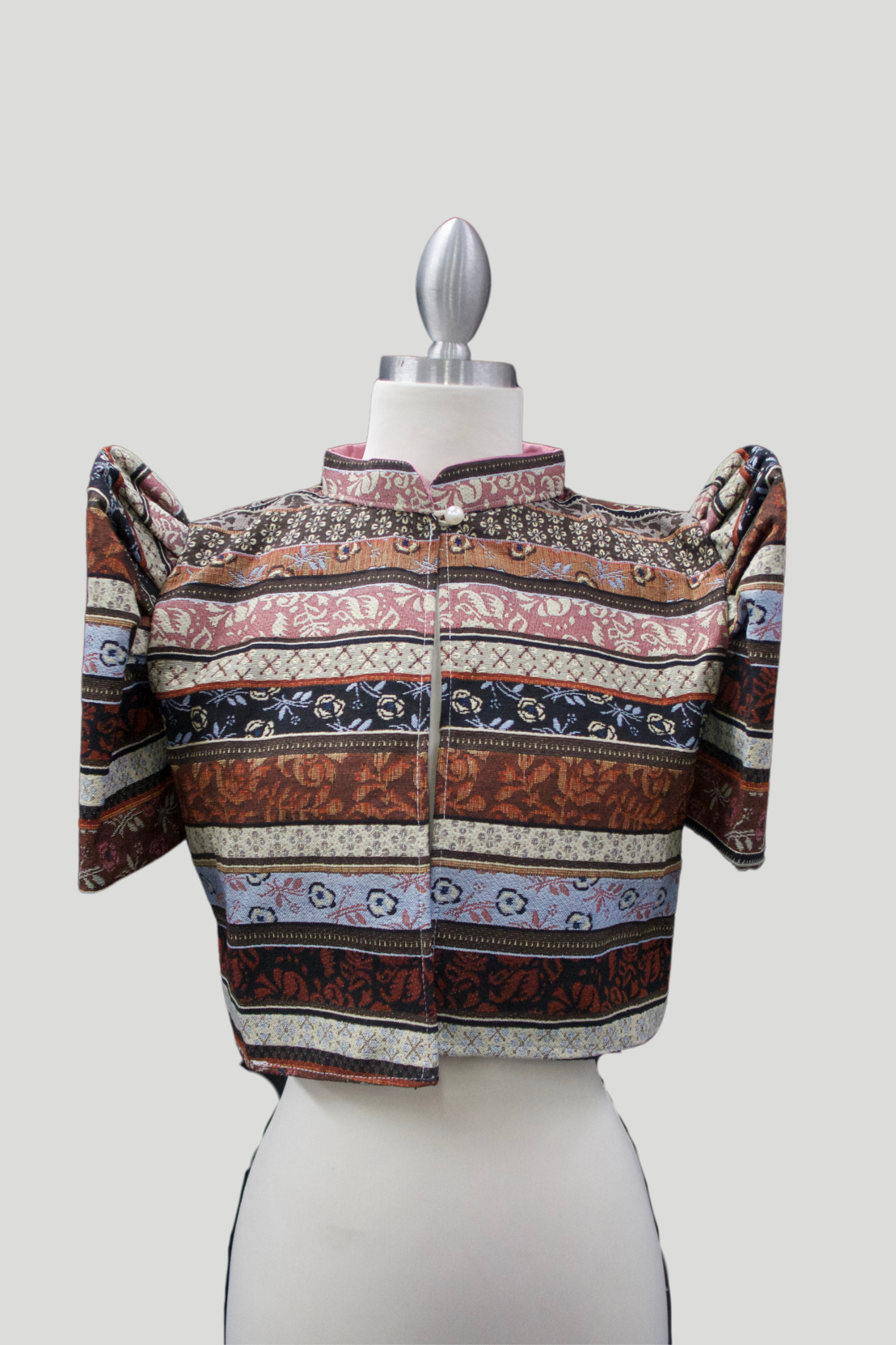 Proudly represent the Filipino culture with this ethnic pattern INSPIRED bolero. Single pearl button front closure to give a peek-a-boo style front. Pair with almost any bottoms and you will have unlimited outfit choices!