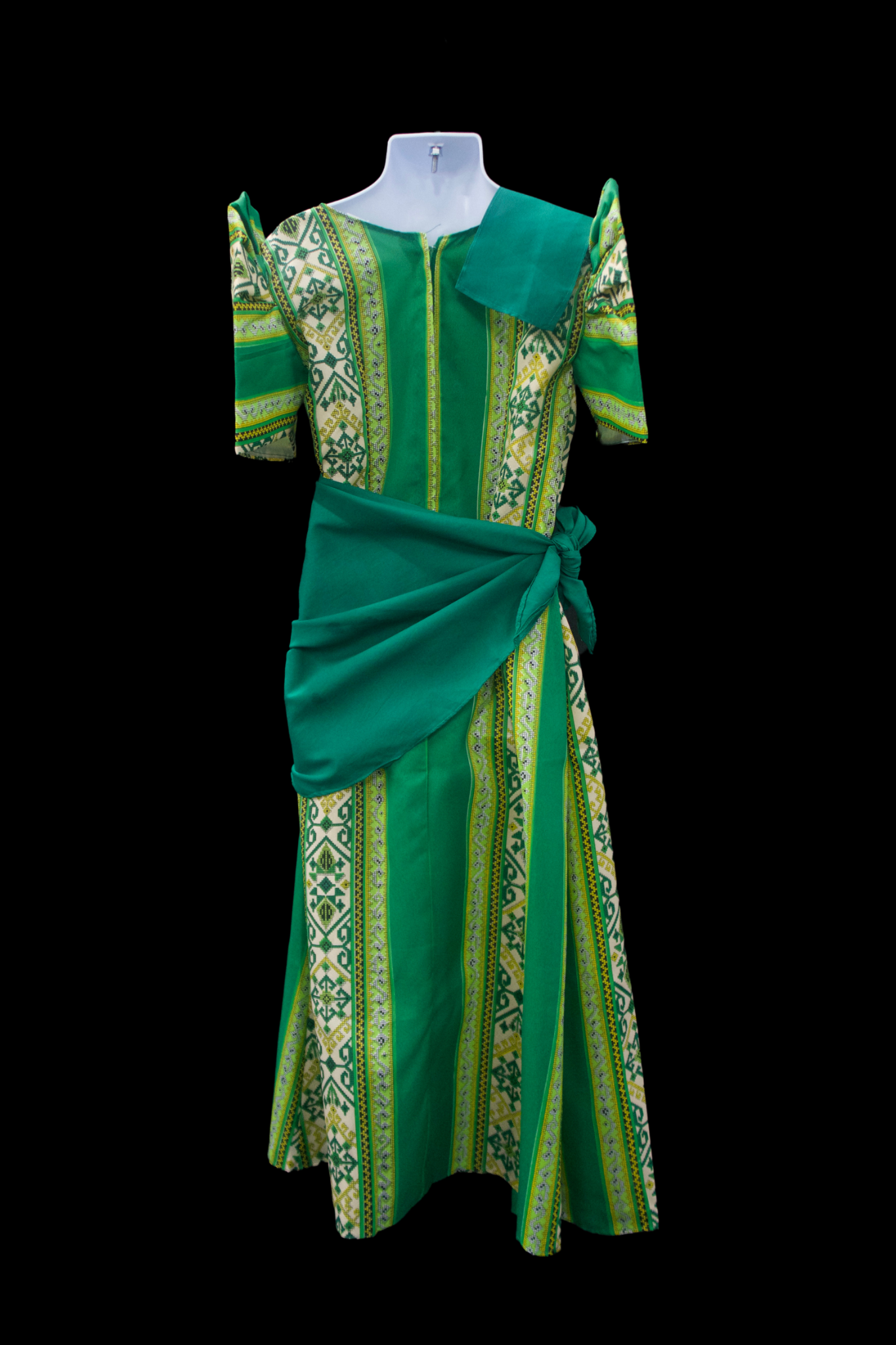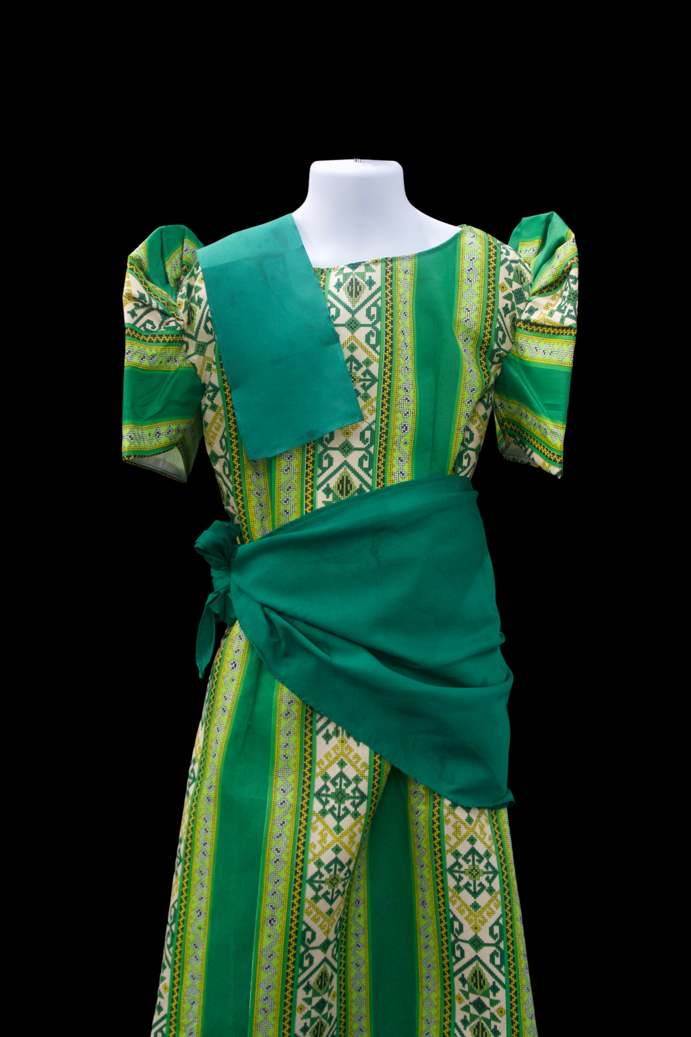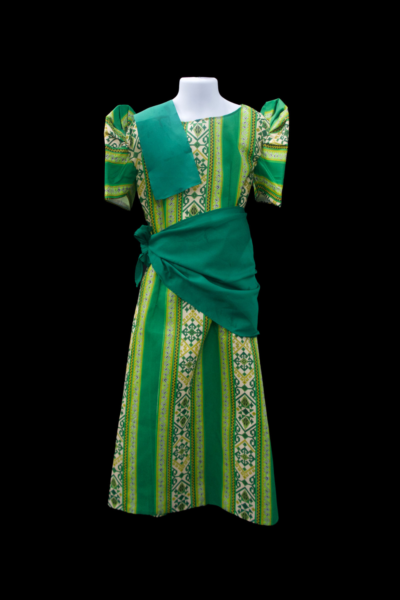 The Balintawak Filipiniana dress was often worn in the countryside during outings such as fiestas or picnics. The light weight material was often associated with the carefree, rural scene and festivity.