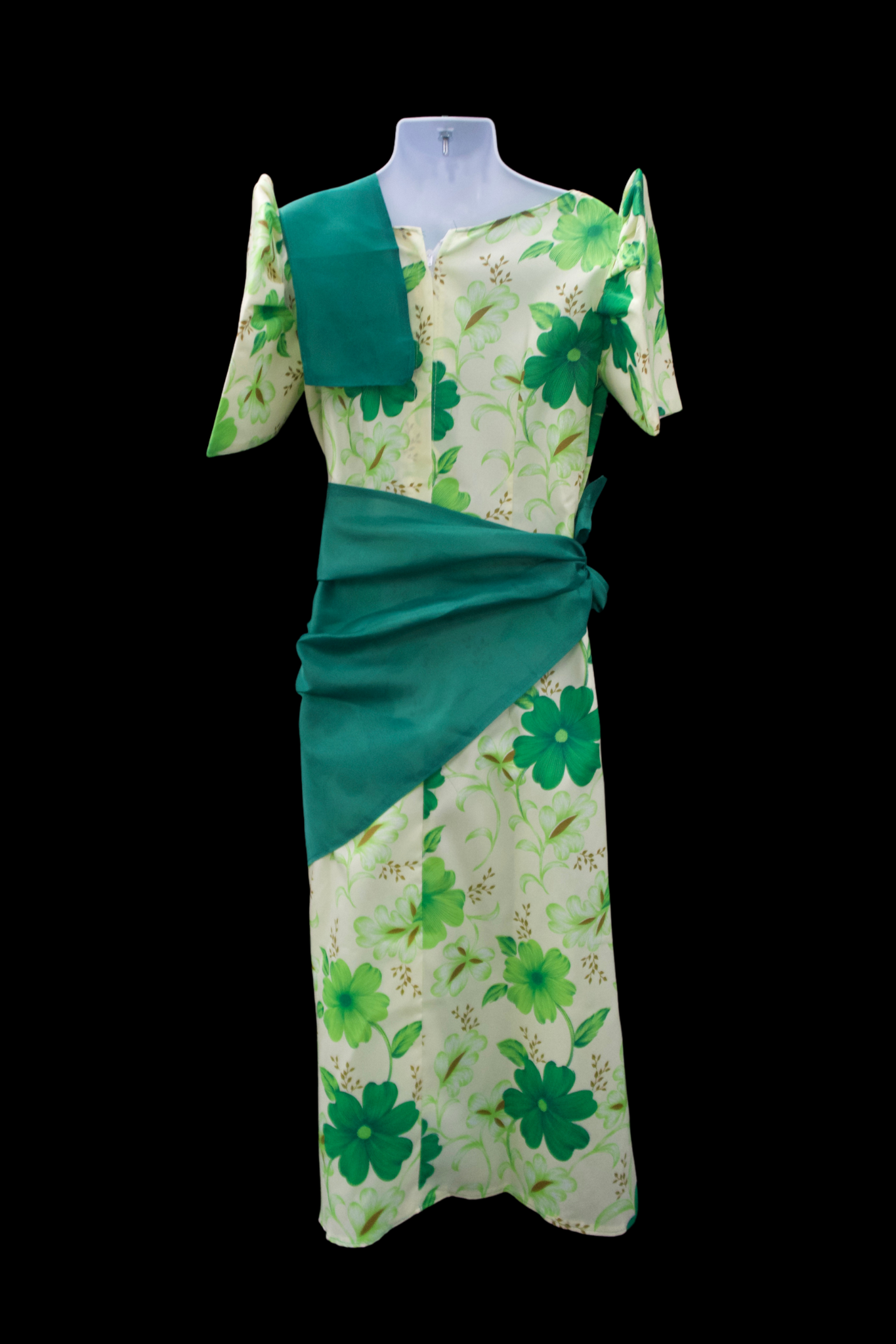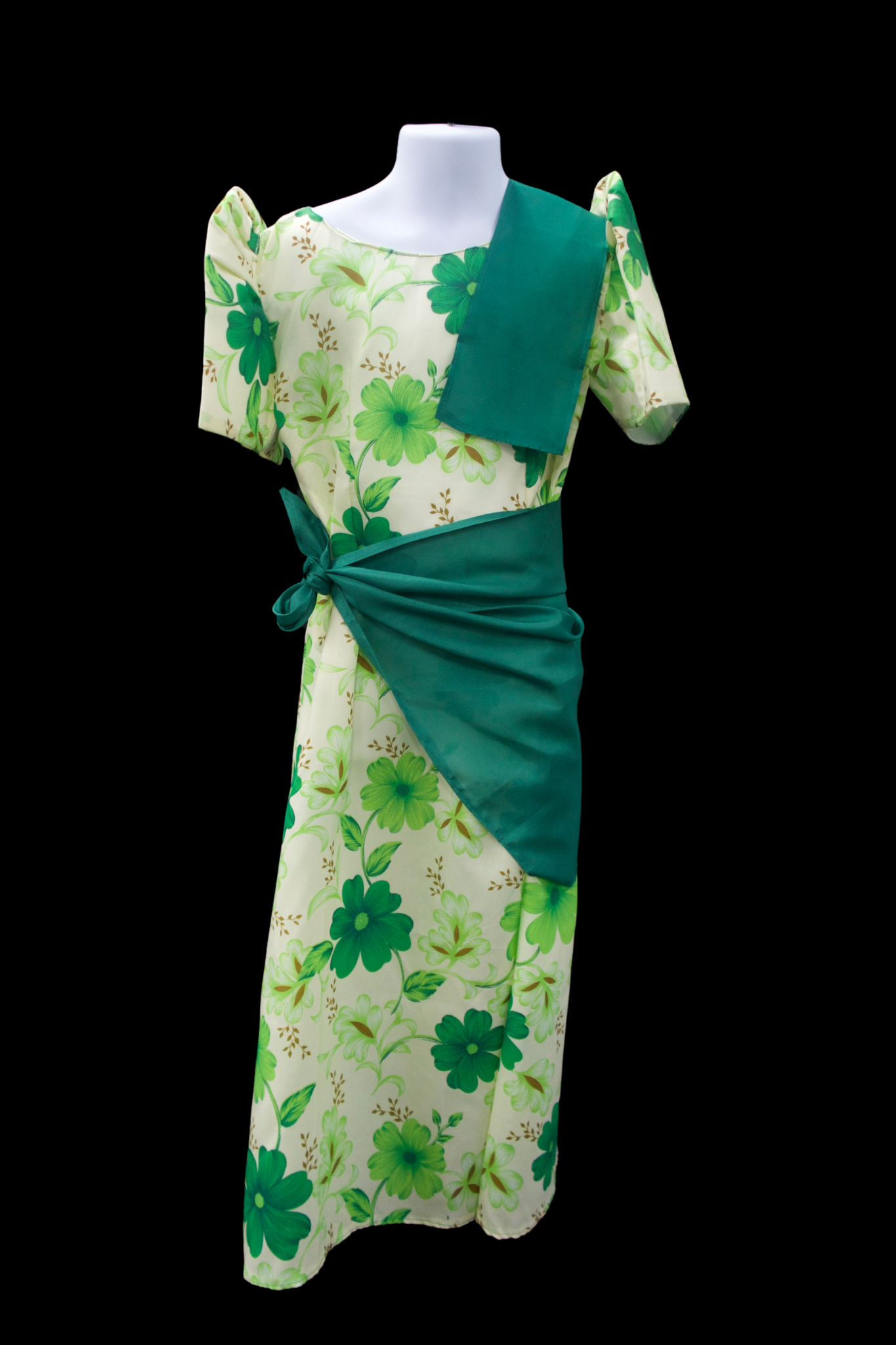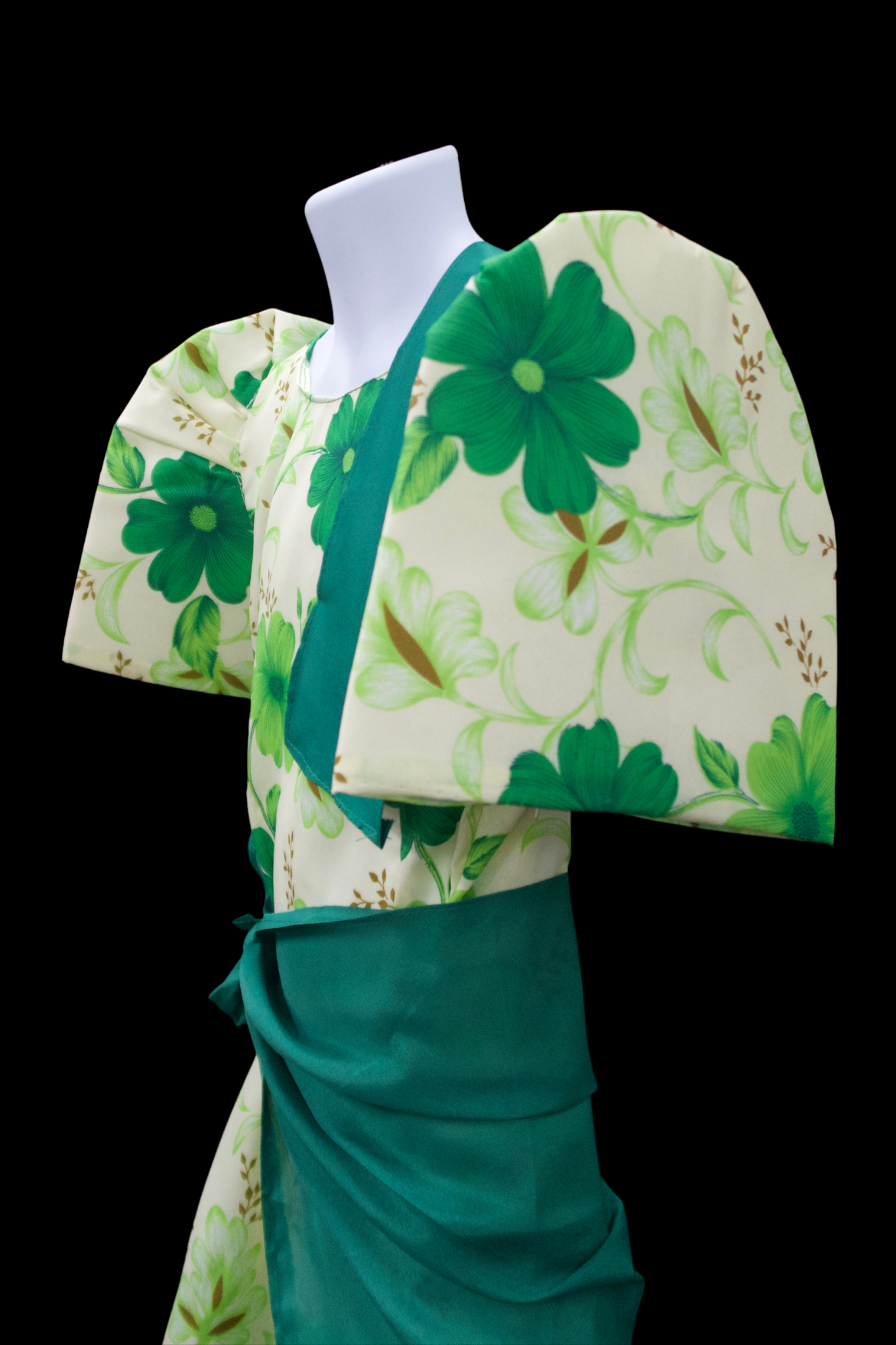 The Balintawak Filipiniana dress was often worn in the countryside during outings such as fiestas or picnics. The light weight material was often associated with the carefree, rural scene and festivity.