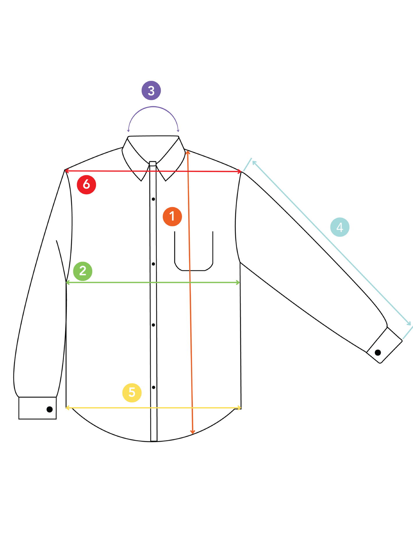 Find a regular fit button up dress shirt, please do not measure the body directly as those measurements do not work with our barongs. Place the dress shirt on a flat surface and use a tape measure and follow the diagram above. Use the size chart to find your size. (Note: You will double the chest number as it measures the circumference)