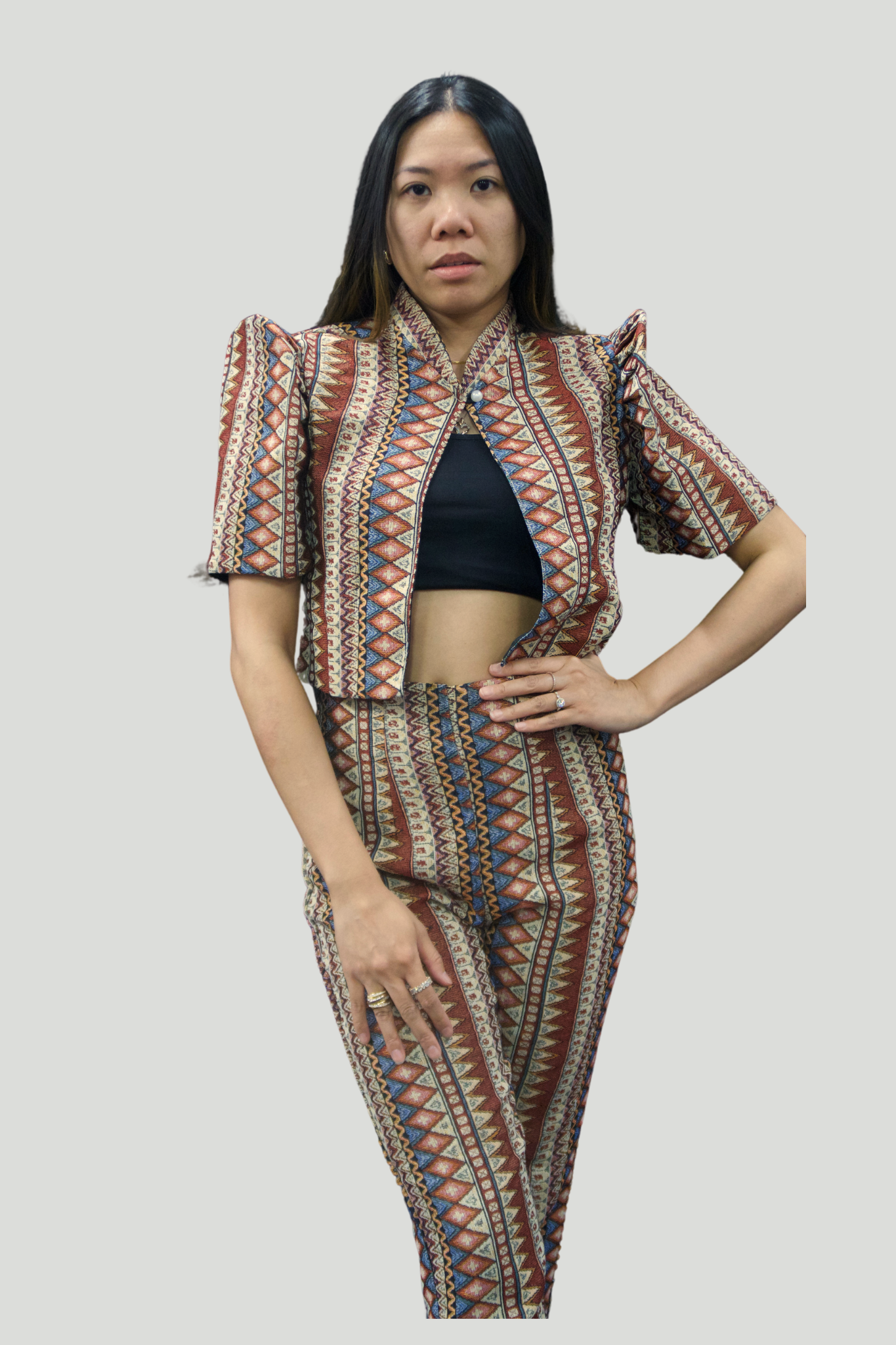 This beautifully crafted set is inspired by the handwoven tribal/ethnic fabrics in the Philippines.