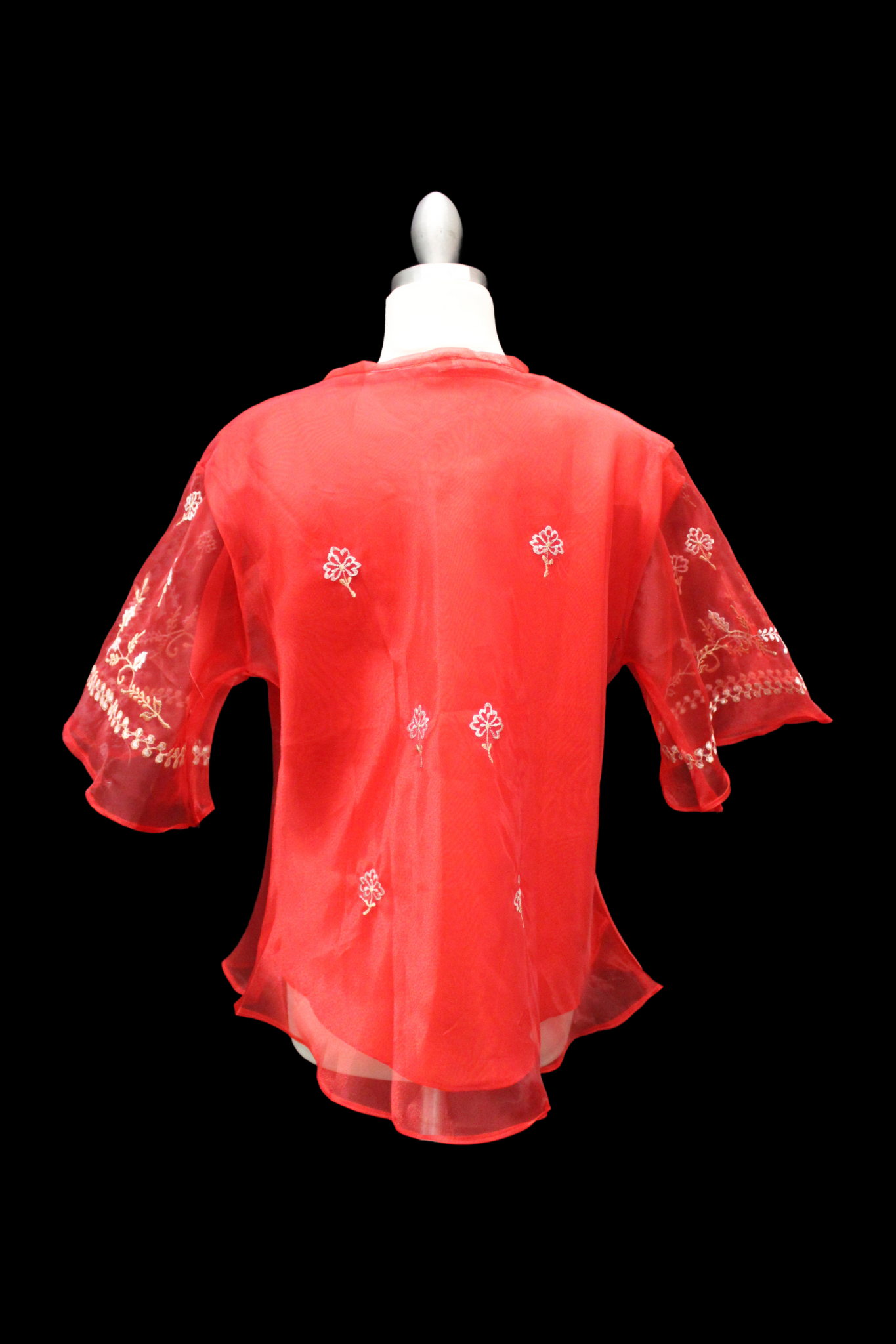 Looking for a traditional and simple style blouse? The embroidered Kimona is perfect for casual events and to pair with your own skirt or pants. This product also comes with a Camisole style tank to wear underneath.