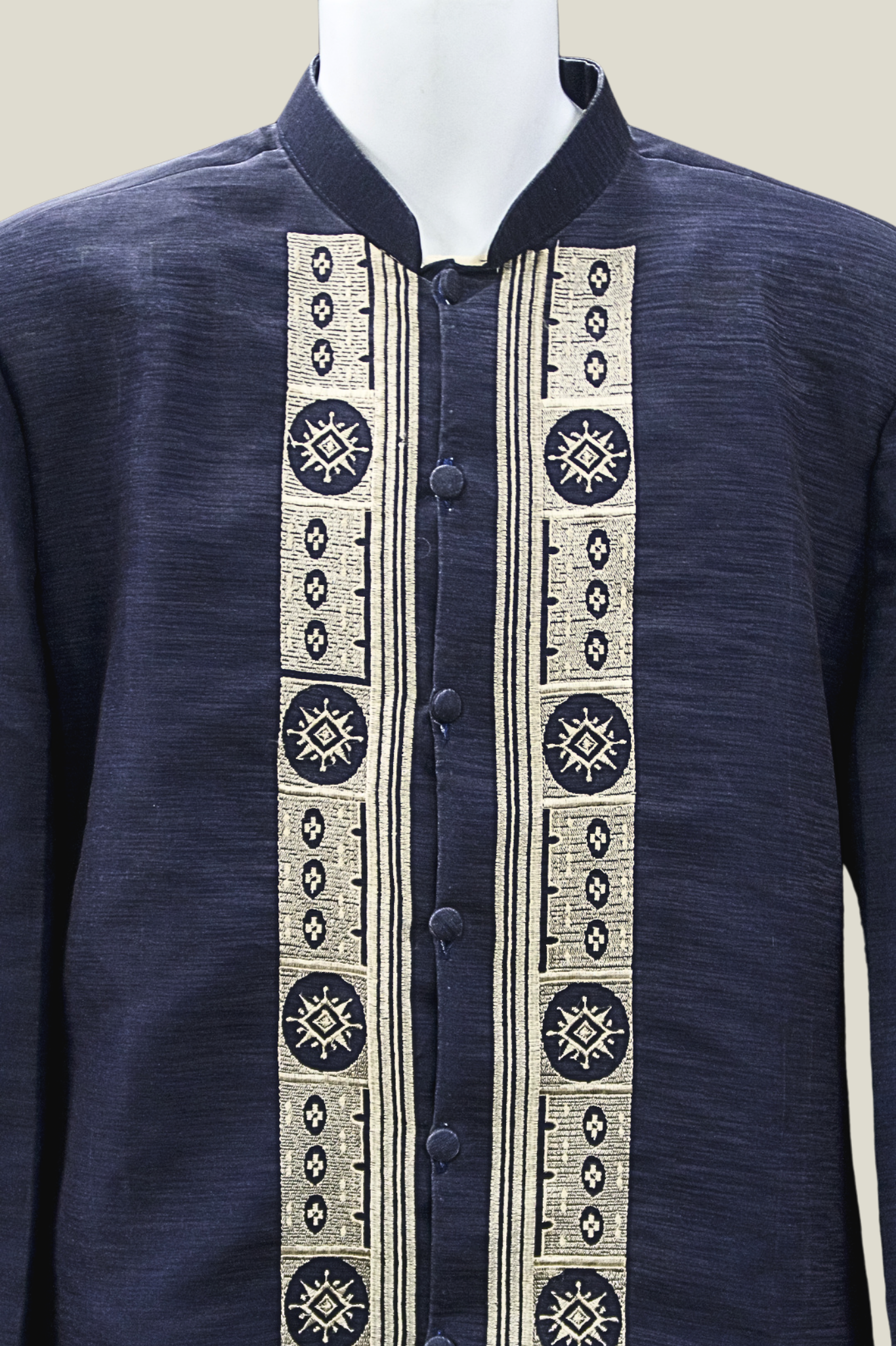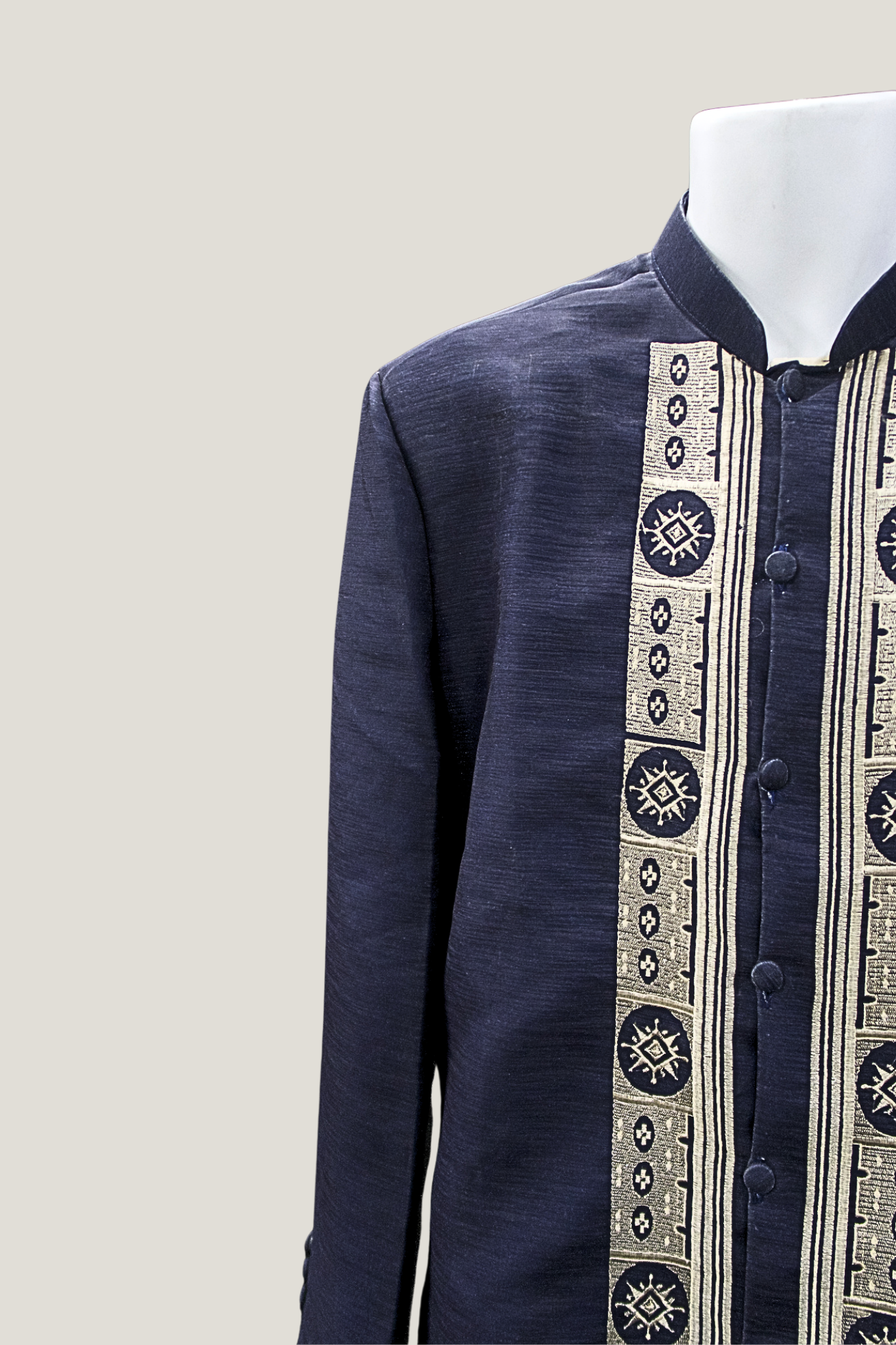 Featuring detailed indigenous-inspired embroidery on the front panel and a sleek mandarin collar, the “Lakan” is the perfect centerpiece for formal events, weddings, or high-profile appearances. Whether you wear it closed like a blazer or layered over a crisp inner shirt, this piece delivers unapologetic sophistication with deep cultural pride.