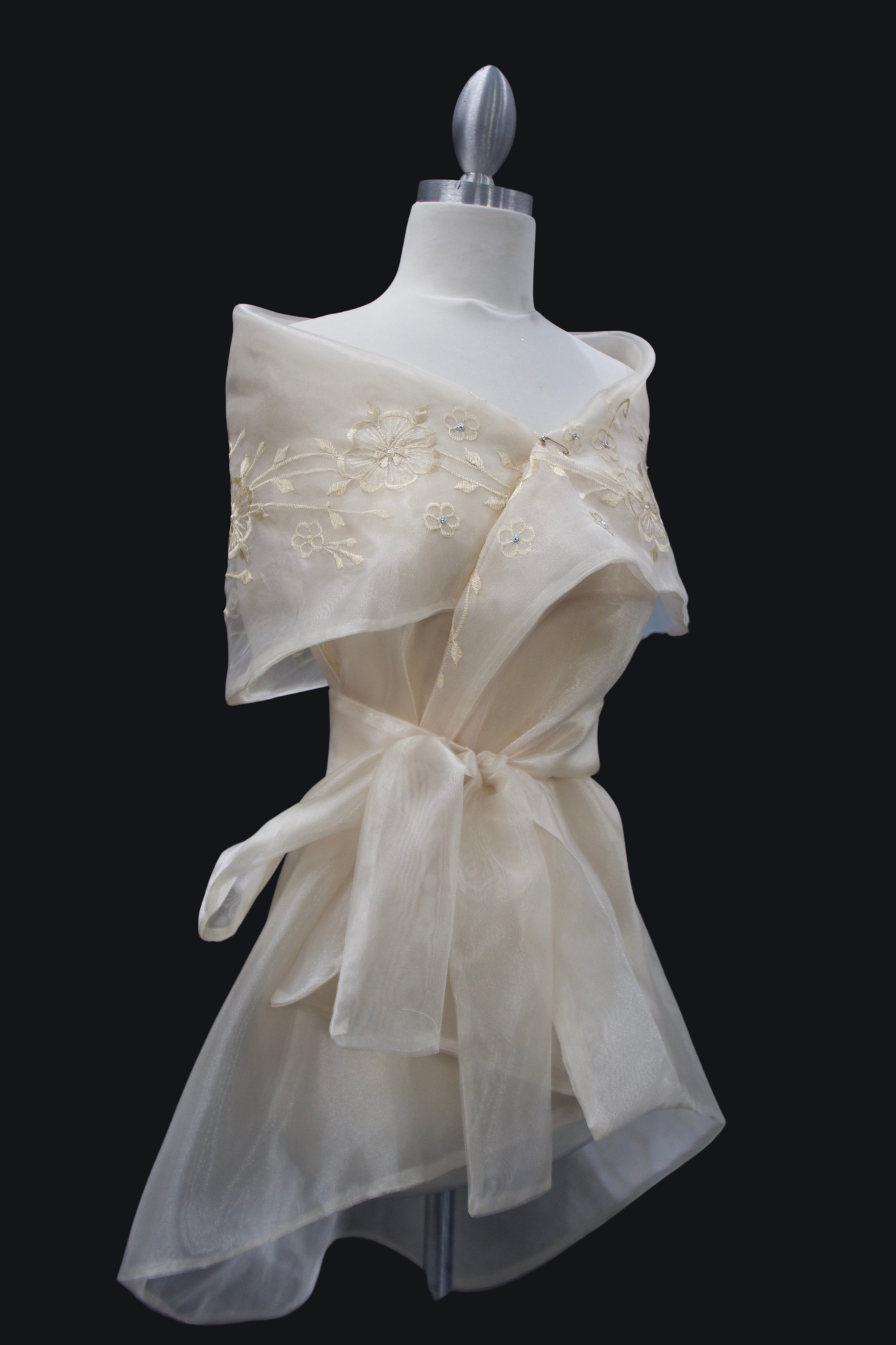 Pairs perfectly over a dress or jumpsuit. A great choice for those who do not like the traditional butterfly style sleeves, but still want a touch of Philippine culture.