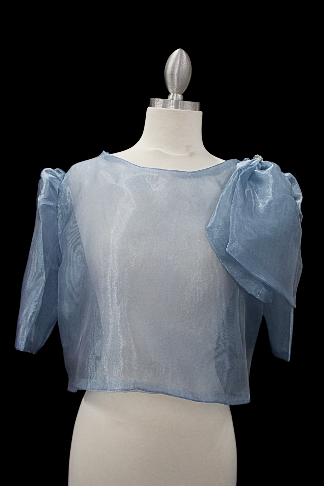 NEW to our collection is the Mara Filipiniana Blouse! This organza blouse is a one size fits all style, due to the open back with tie closure making it easy to adjust to any size. The cropped fitting and big bow detailing gives a modern style and makes it easy to pair with a skirt, over a dress, or with pants.