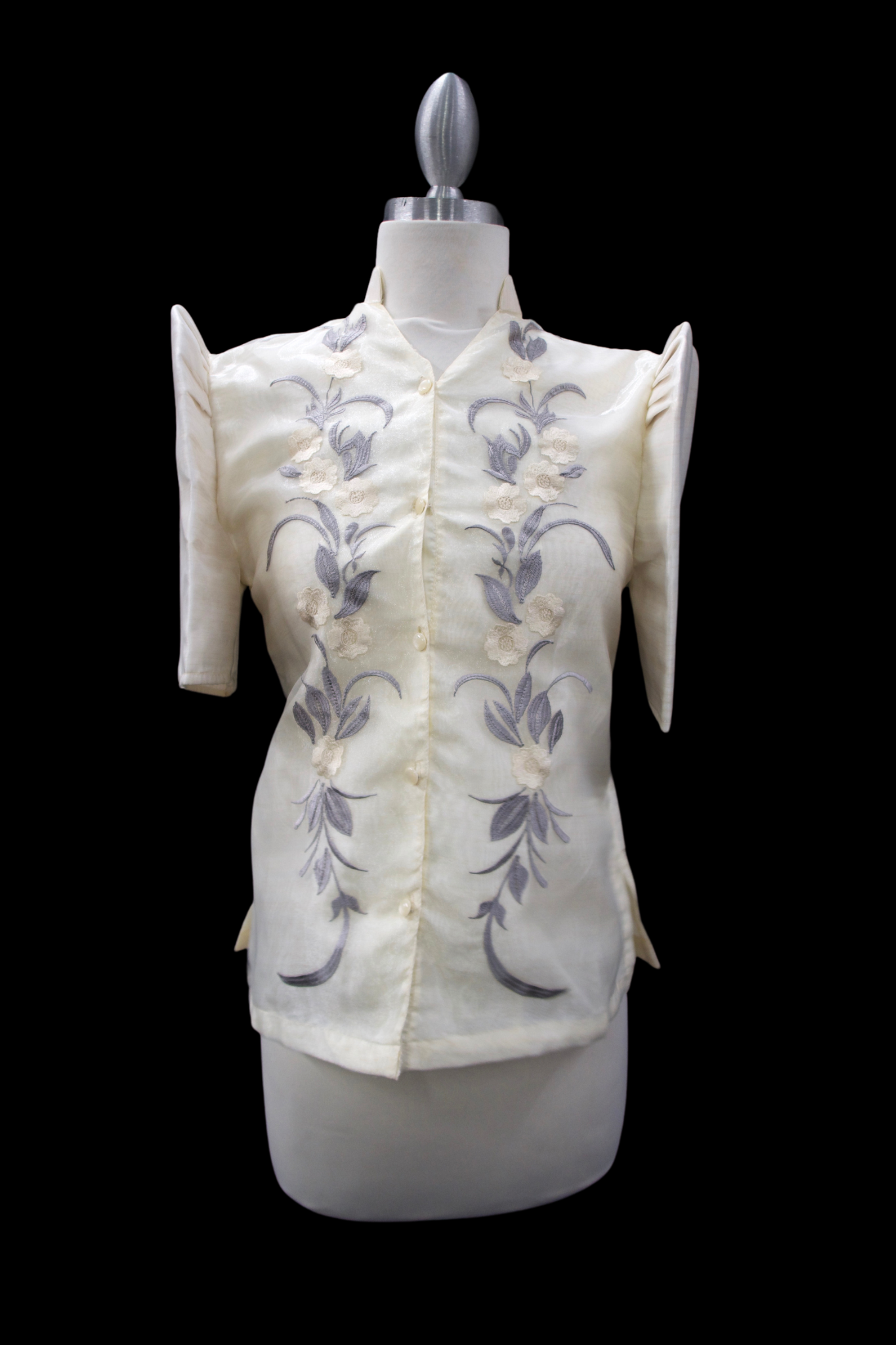 The barong blouse is perfect to pair with our Satin Wrap Skirt or even a pair of wide leg pants for a modern style. The mestiza/butterfly sleeve detail pays tribute to the Maria Clara sleeves to give that Filipiniana style look.