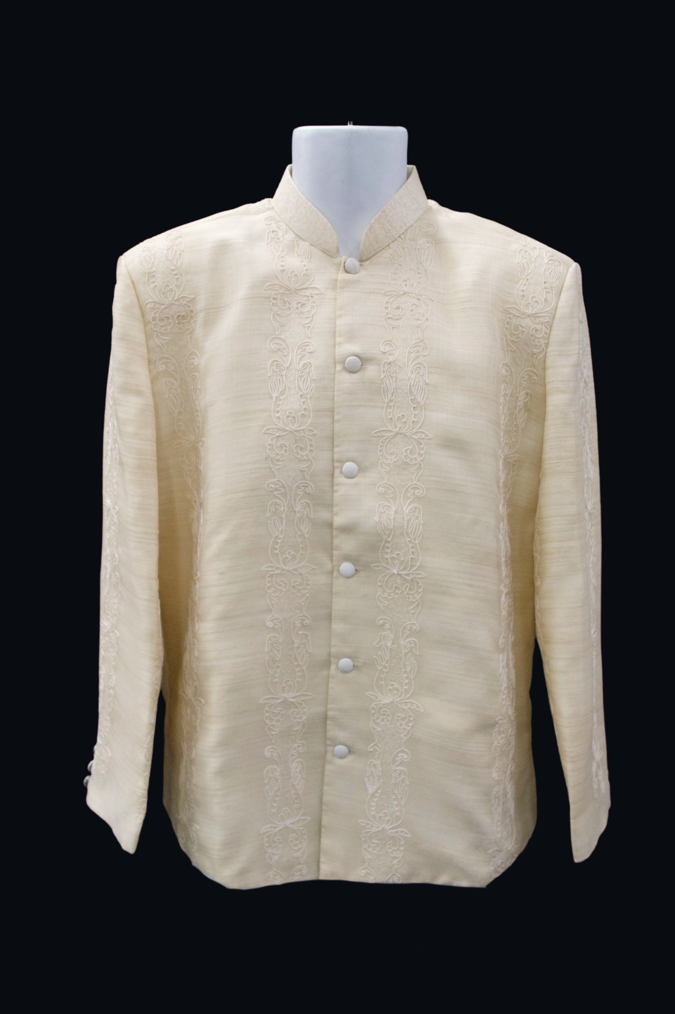 What makes this barong different from traditional designs, is the 'RAYA' hand embroidery detail that can be found throughout the entire coat from front to back and even the sleeves.