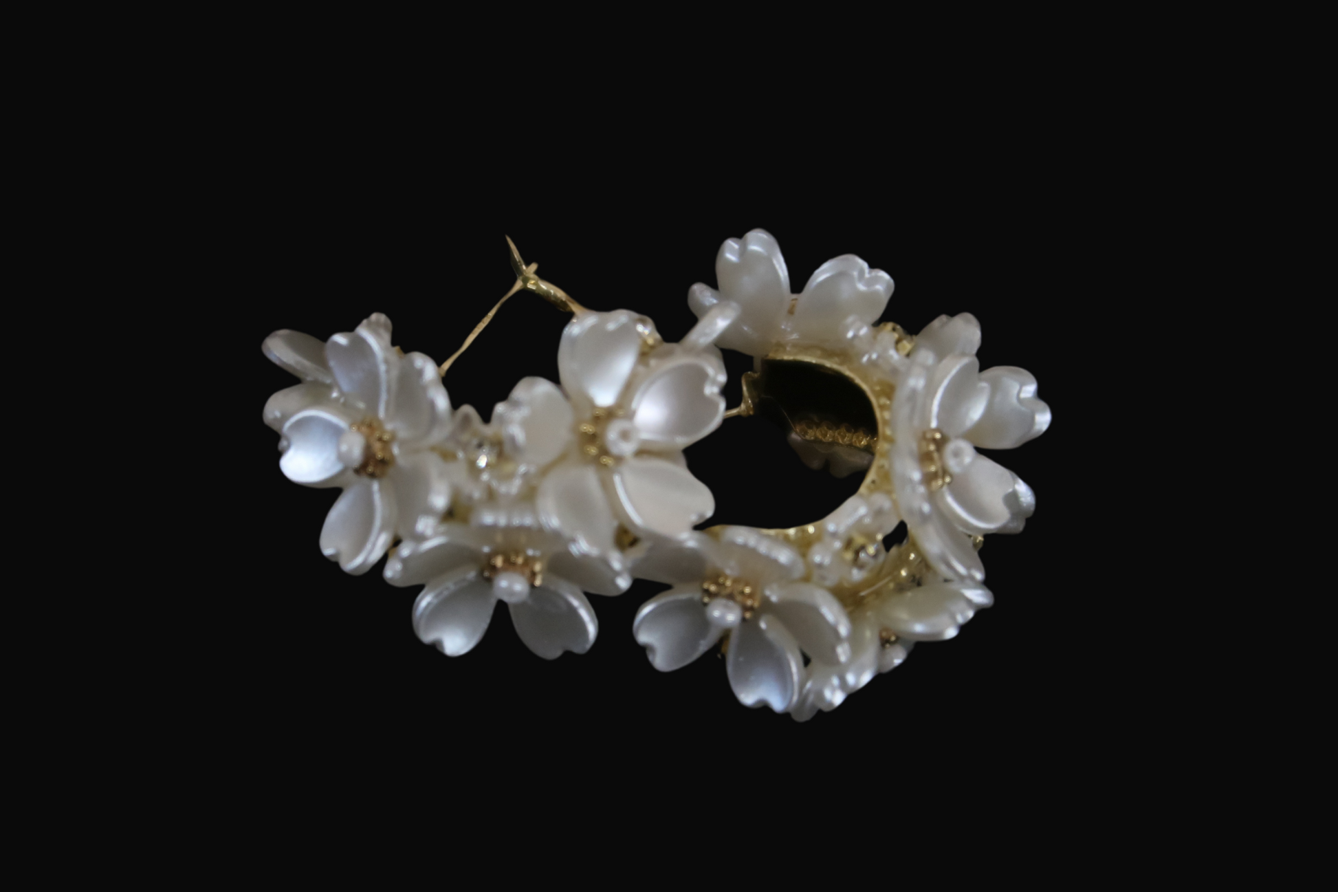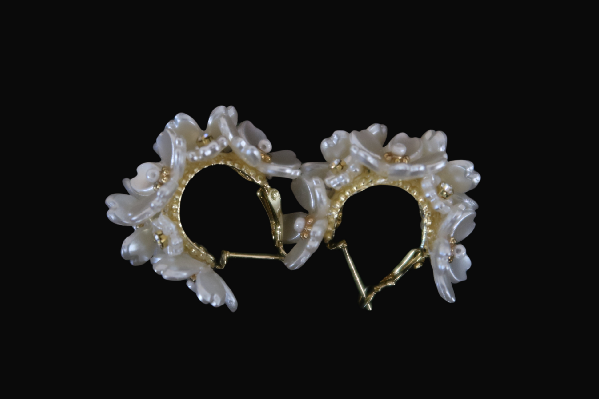 The Sampaguita is the national flower of our beloved Philippines. Made out of a beautiful pearly shell material, these mini hoop earrings add a sweet little touch to your outfit.