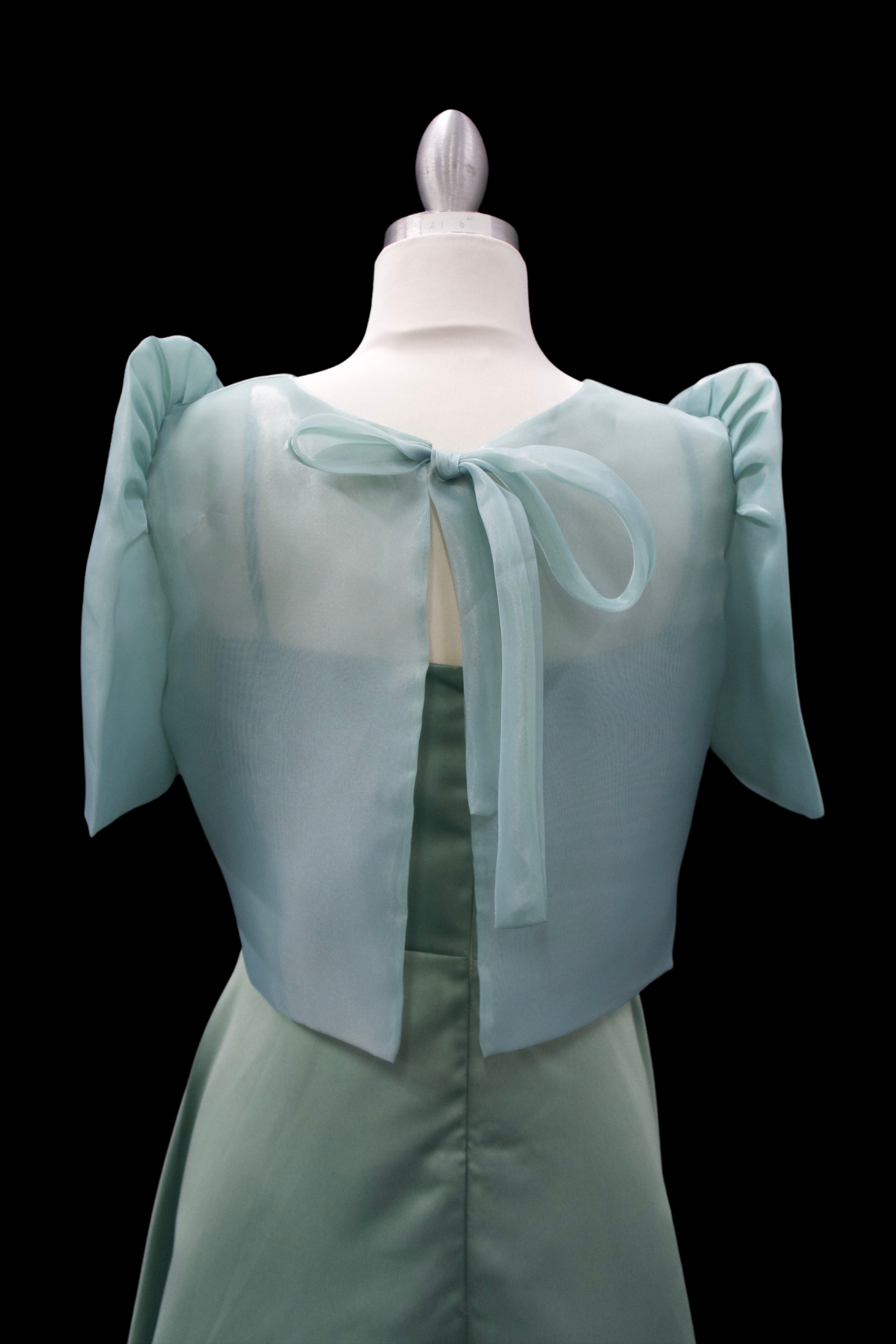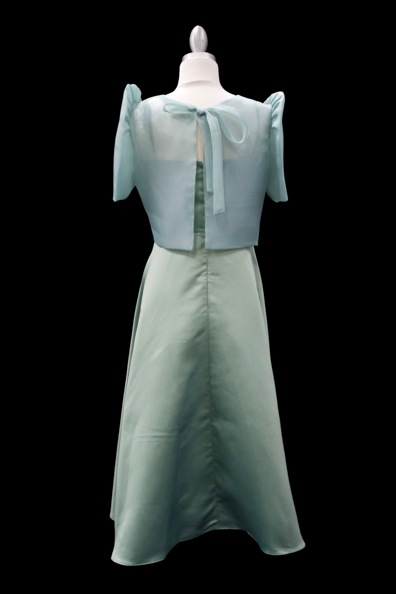 Featuring a Taiwan Jusi fabric blouse w/ tie closure and paired with a duchess fabric midi dress. This simple yet modest set is a great choice for weddings, springtime events, or semi-formal parties.